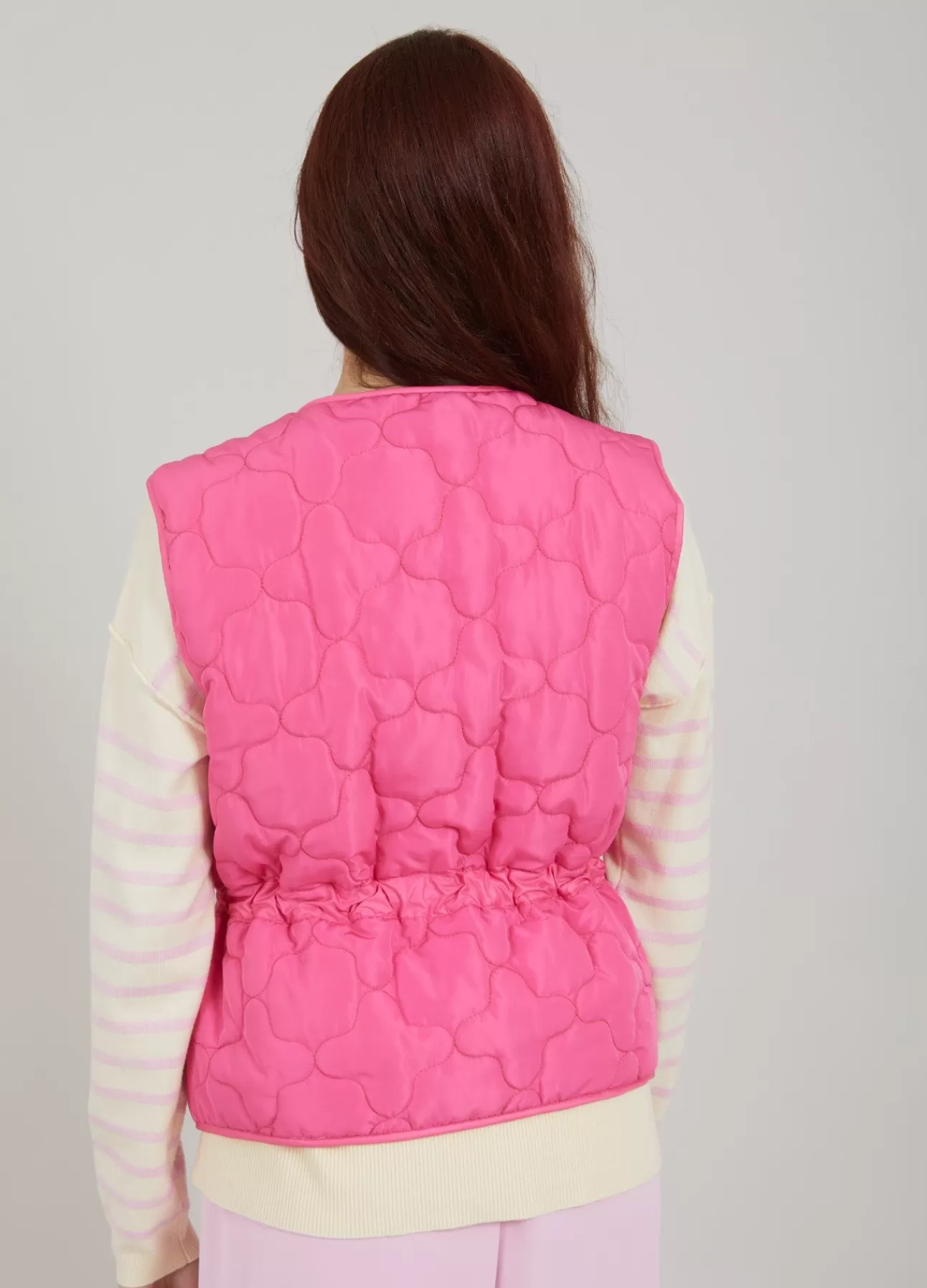Olga Quiltet Vest Fra Cc Heart. Olga Er Designet Med Snorrer I Taljen, Rund Halsudskaering Og Med Knaplukning Ned Langs Fronten.