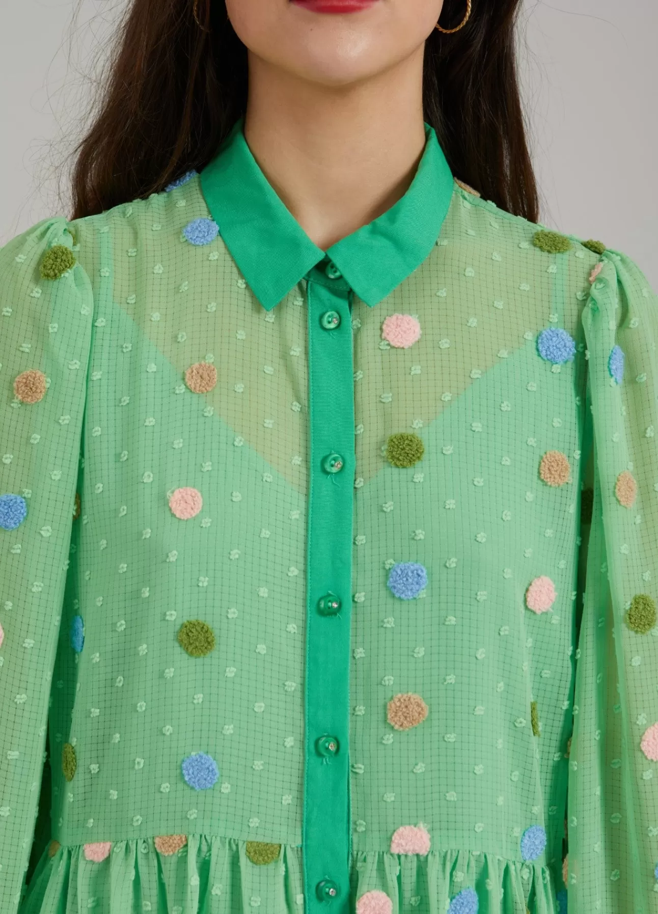 Kort Kjole M. Prikket Tekstur, Klassisk Skjortekrave Og Los Pasform. Produktdetaljer: – Kort – Lange Aermer- Klassisk Sk…